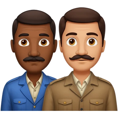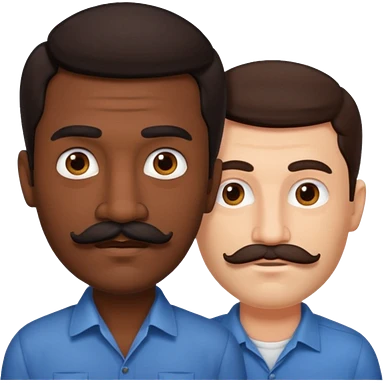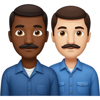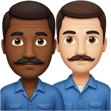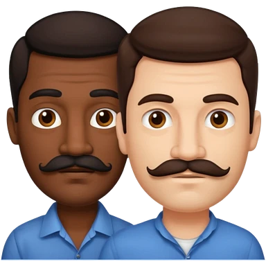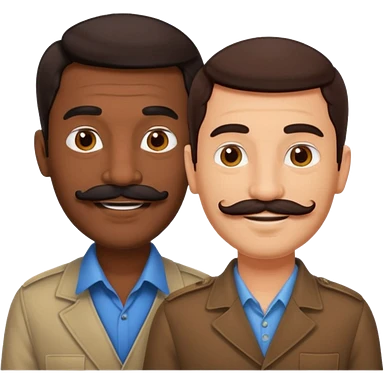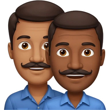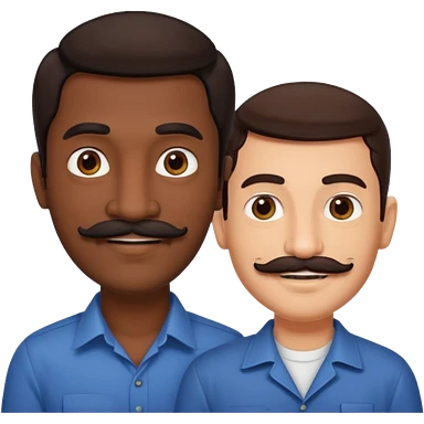 Gay couple. Tall dark indian man with mustache and shorter white man with dark brown hair and no mustache. emoji