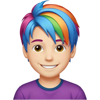 gay young Asian man with light skin, short dark hair styled upward with a sharp spiked swoop in front, slightly narrowed almond-shaped eyes with a confident, knowing squint, very squinty a clean-shaven face, and a sleek single-ear headset, wearing a dark pinstripe suit with a patterned shirt tie emoji