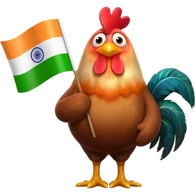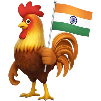 "3D premium,3D rooster HOLDING indian FLAG emoji