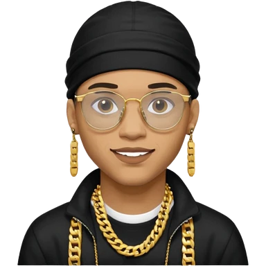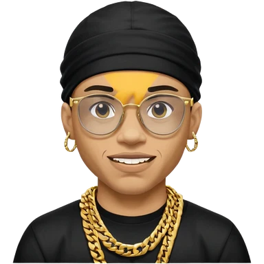 lightskin man with a black durag,a cuban link chain,glasses, and flexing grillz emoji