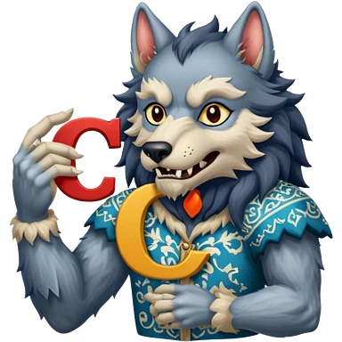 a werewolf hand holding the letter c make the c made out of persian carpet texture emoji