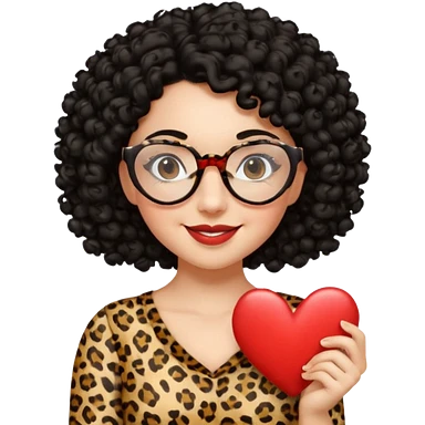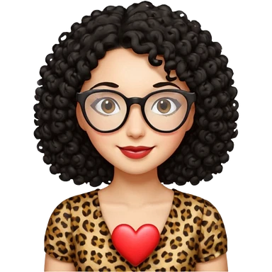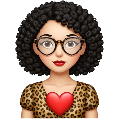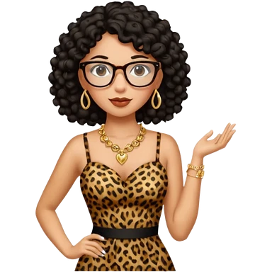 A women with a black curly hair and heart glasses, leopard print dress emoji