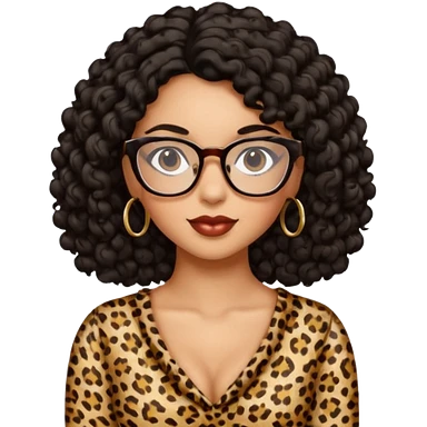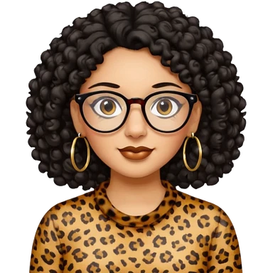 A women who wears glasses with a black curly hair, in a leopard print shirt, hoop earrings emoji