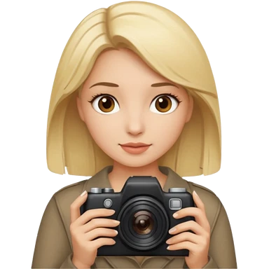 femme blonde yeux marron qui tient un appareil photo emoji
