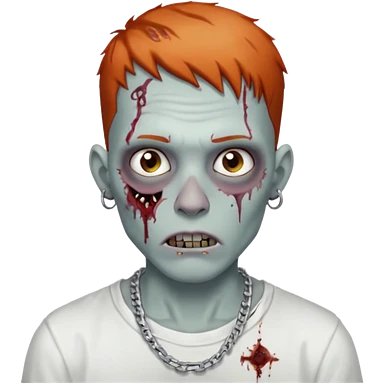 Zombie with freckles white shirt low taper fade haircut silver chain Cuban style emoji