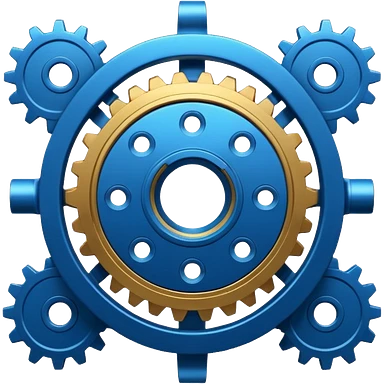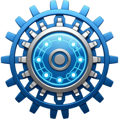 gear with circuit-style connected nodes, representing global system configuration and connectivity. emoji