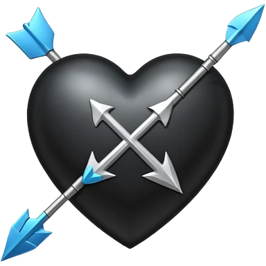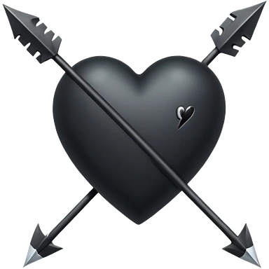 Black heart with cross arrow. Don't use red colour . Use normal Arrow which goes from one side and come out of other . Don't use fancy arrow. Make it that it goes from bottom right to come on top left. Don't use red colour emoji