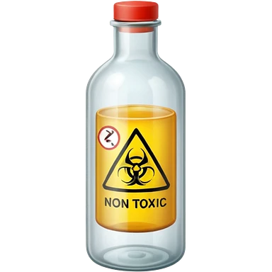 TRANSPARENT BOTTLE CAN SEE LIQUID INSIDE AND HAS"NON-TOXIC" AND "NON-HAZARDOUS" SIGN emoji
