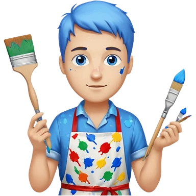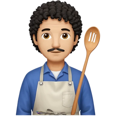 homme 50 ans cheveux frisé noir artiste peintre avec tablier d'art emoji