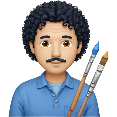 homme 50 ans cheveux frisé noir artiste peintre chemisse bleu emoji