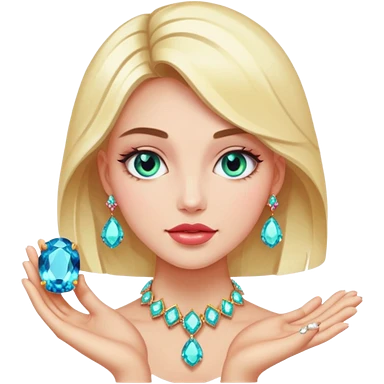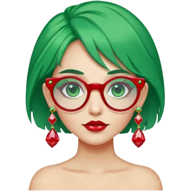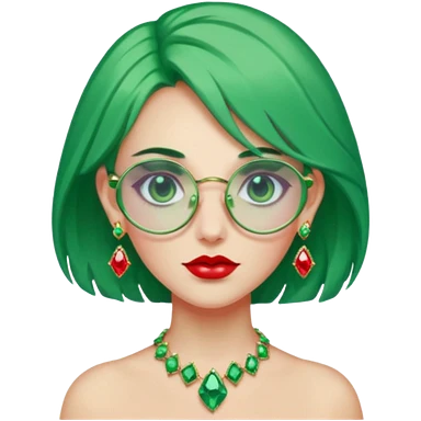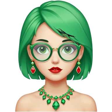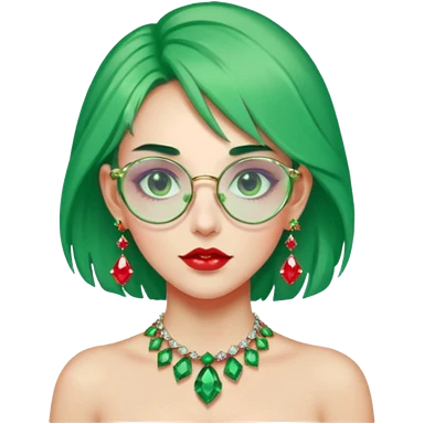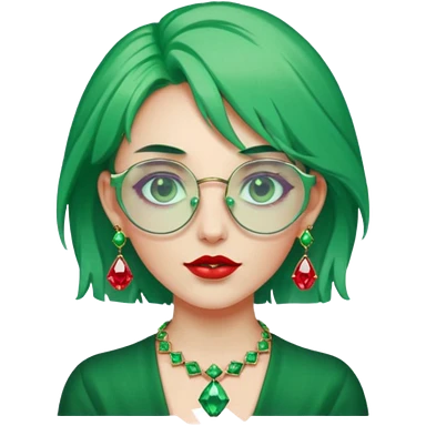 gem lover woman with gem accessories excessive amount gem glassess very big gem earrings green hair emoji