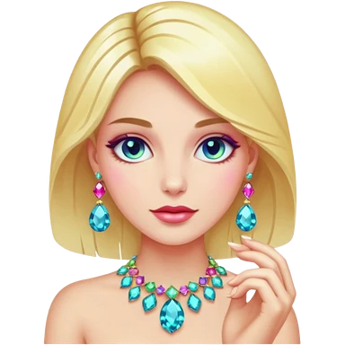 gem lover woman with gem accessories excessive amount gem glassess very big gem earrings green hair and red diamonds emoji