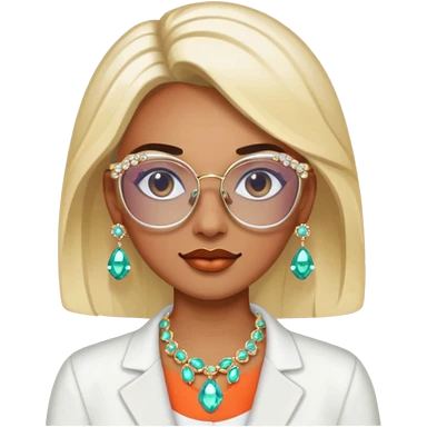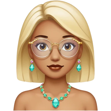 gem lover woman with gem accessories excessive amount gem glassess very big gem earrings emoji