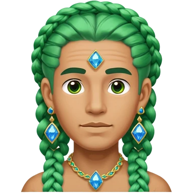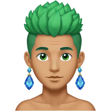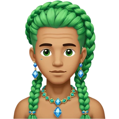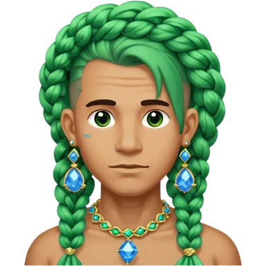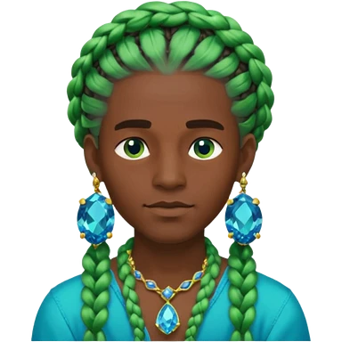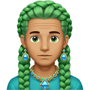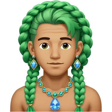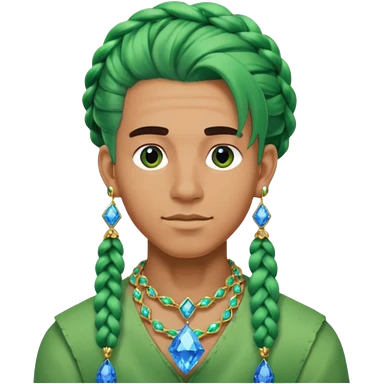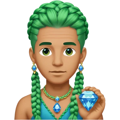gem lover man with gem accessories excessive amount very big gem earrings green chunky braided hair and blue diamonds emoji | AI Emoji Generator