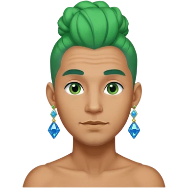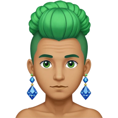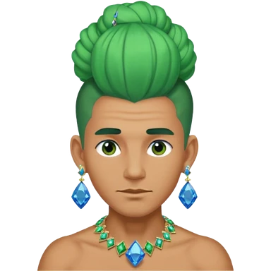 gem lover man with gem accessories excessive amount very big gem earrings green bun hair and bluediamonds emoji