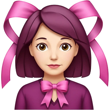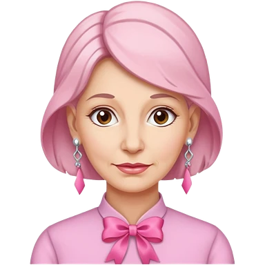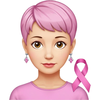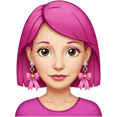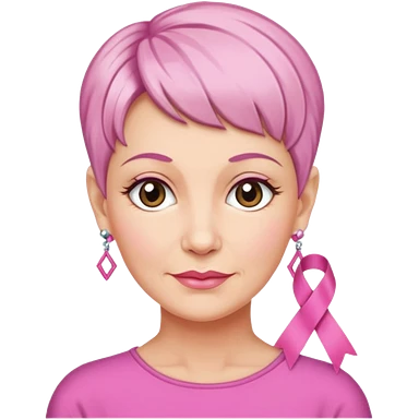 Mature Woman with pixiecut wearing earrings of pink ribbons emoji