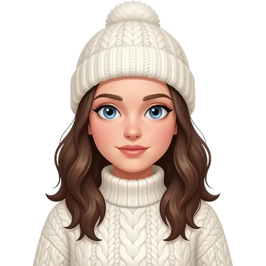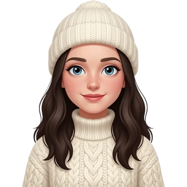 "A beautiful cinematic portrait of a Gen Z girl for January. Wearing cozy cream cable knit sweater and beanie. Cinematic cold girl makeup. Soft morning light, snowy background. photorealistic, fashion style, soft bokeh." emoji