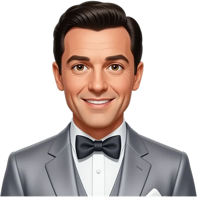 Gene Kelly with brown eyes, black hair, gray silk suit with bow tie emoji