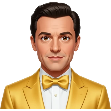 Gene Kelly with dark brown hair, cream sequin suit with bow tie emoji