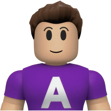 Genera un personaje de roblox con una playera con una letra A color morada y la letra en color blanco emoji