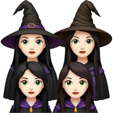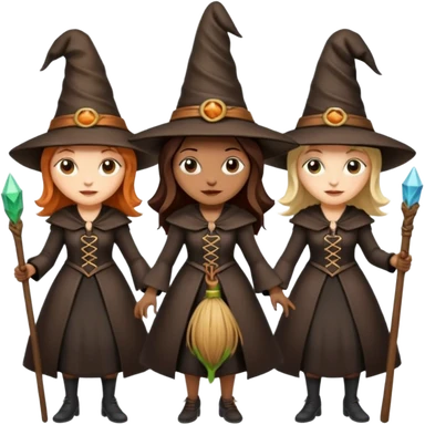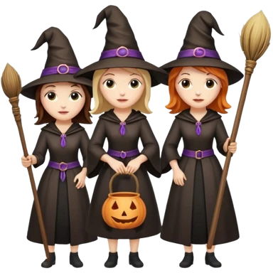 CUATRO BRUJAS CON ESCOBA Y VARITA MAGICA emoji