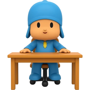 Genera un personaje de POCOYO de cuerpo completo sentado en un escritorio con una emoji