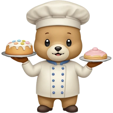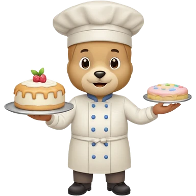 quiero un oso de pie con un delantal de pasteleria y un jorrito de chef que una mano tenga una manga oastlera emoji