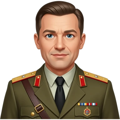 General Anatolij mit General Wappen und Militär Uniform und ein paar graue Haare und braune Augen emoji | AI Emoji Generator