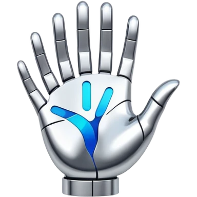 An abstract AI-inspired logo with fluid shapes suggesting a hand holding an invisible object, incorporating pixelated elements, sleek and futuristic emoji