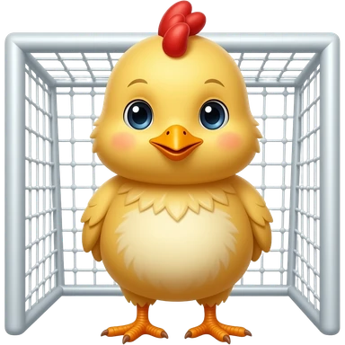 generate an emoji for ios system where a little baby chick is behind a soccer goal. use the ios emoji for chick and goal emoji
