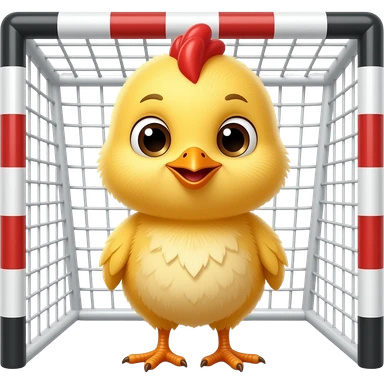 generate an emoji for ios system where a little baby chick is behind a soccer goal. use the ios emoji for chick and goal. the chick MUST BE BEHIND the goal emoji