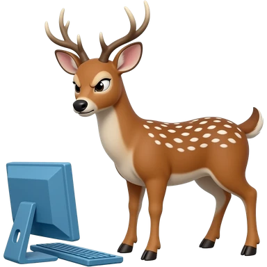 generate a deer that is wearing a pink bow and pink hat. but the horns are damaging the hat who works as a courier on a blue scooter emoji | AI Emoji Generator