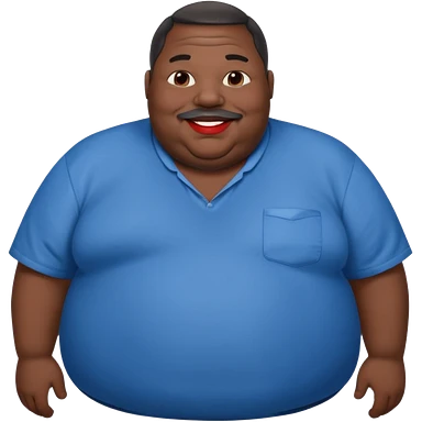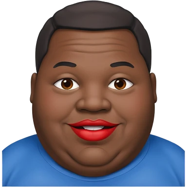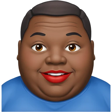 an extremely obese black man with giant red lips wearing a blue an gray shirt emoji