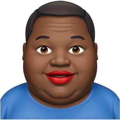 an extremely obese man with extremely dark skin and giant red lips wearing a blue-and-gray shirt emoji