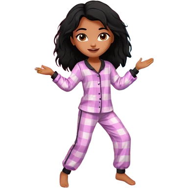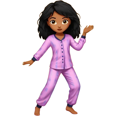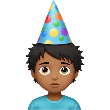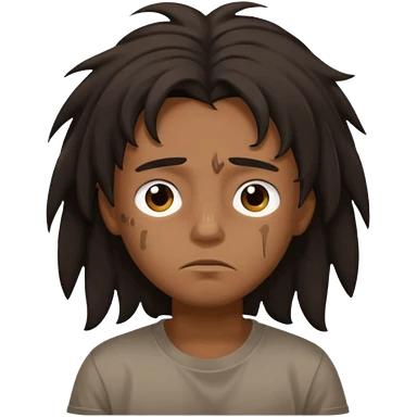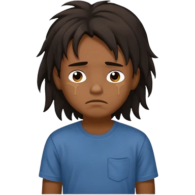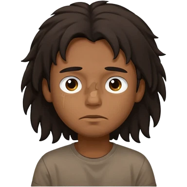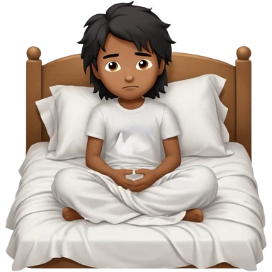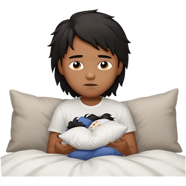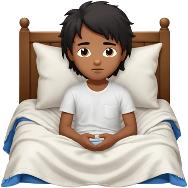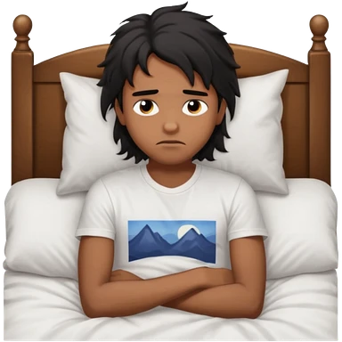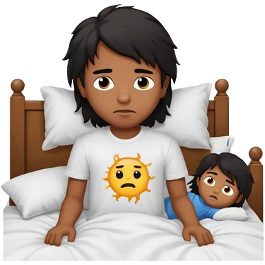 generate a pretty bratz brown skinned boy with black messy long hair wearing a white tshirt sitting in his in bed. Looking sleepy emoji | AI Emoji Generator