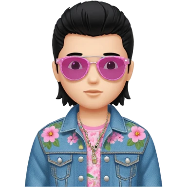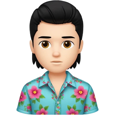 generate a pretty bratz fair skinned boy with a mullet black hair wearing a floral shirt emoji