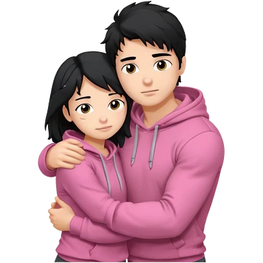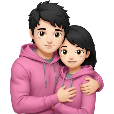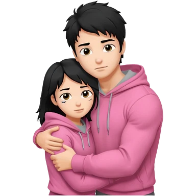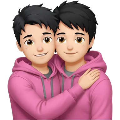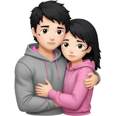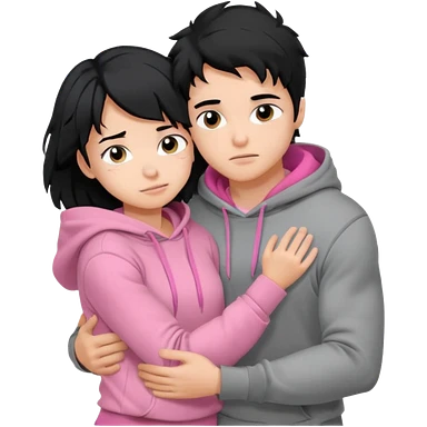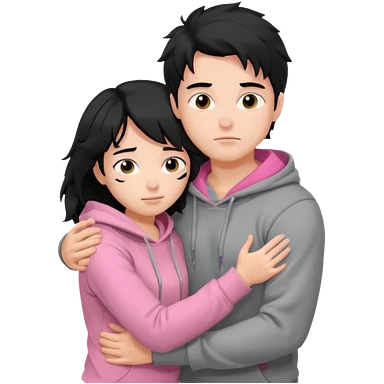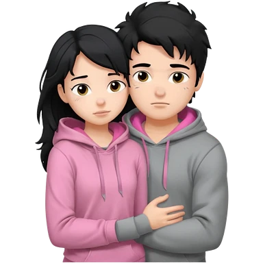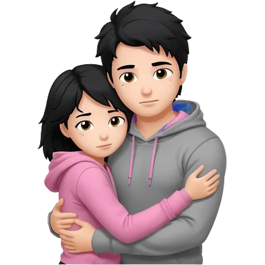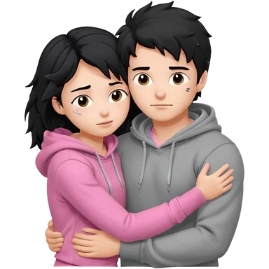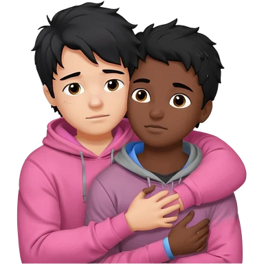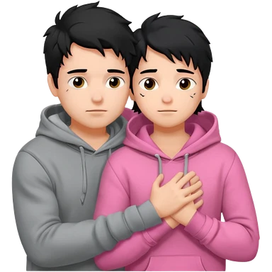 generate a pretty bratz fair skinned boy with messy black hair in a grey hoodie looking sad and bored with hand on chin. Make him muscled emoji | AI Emoji Generator