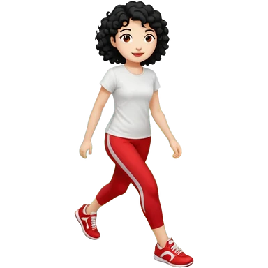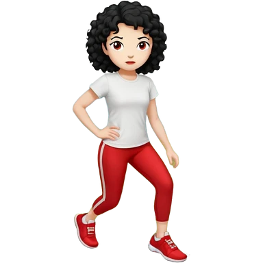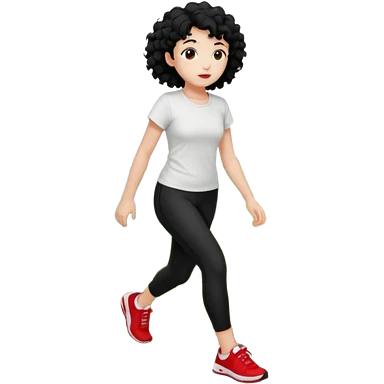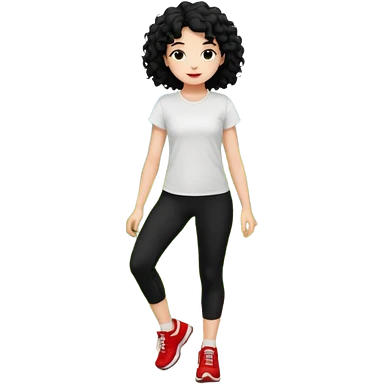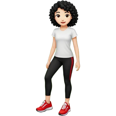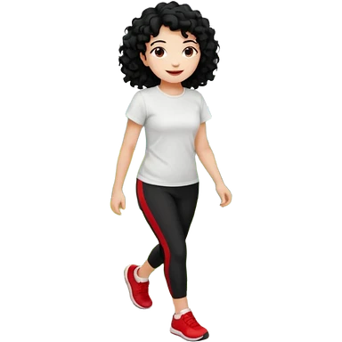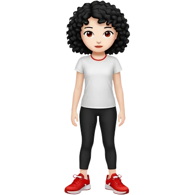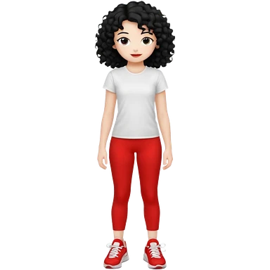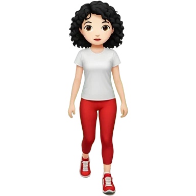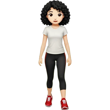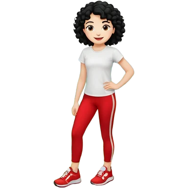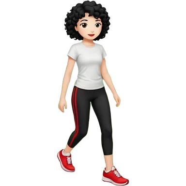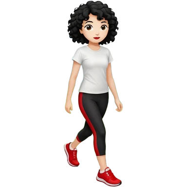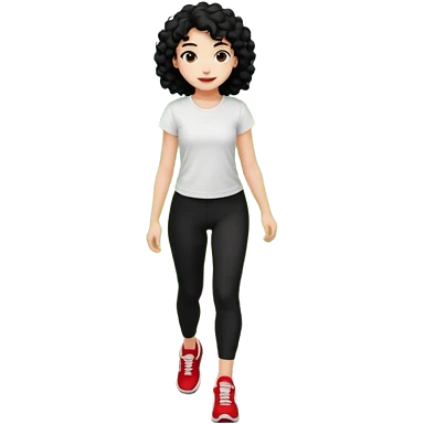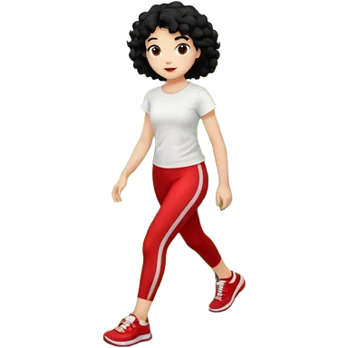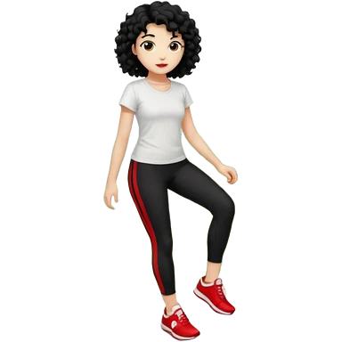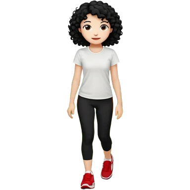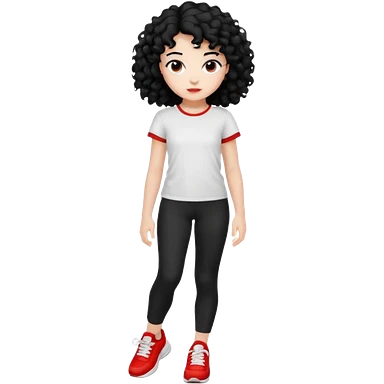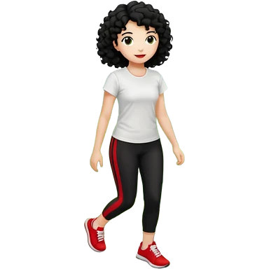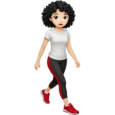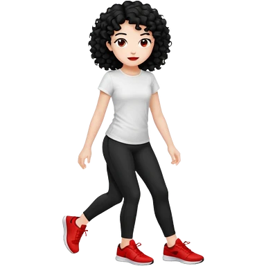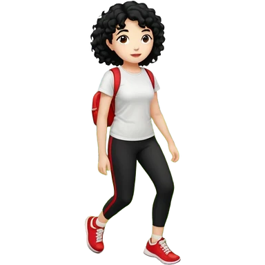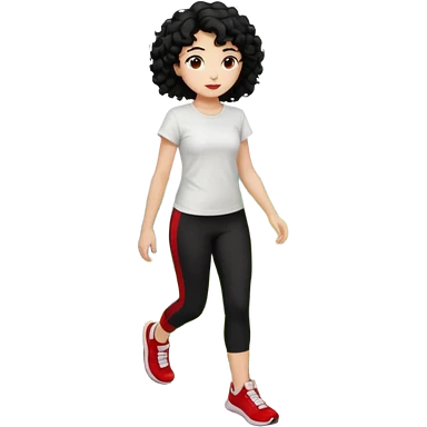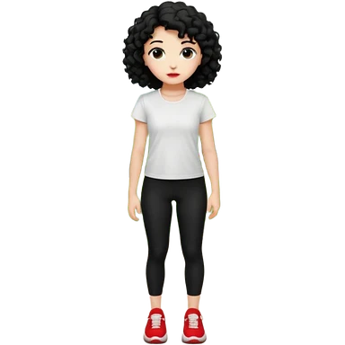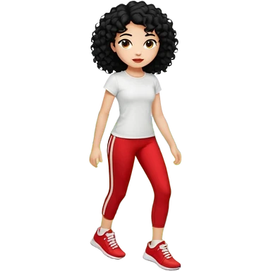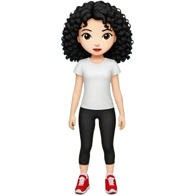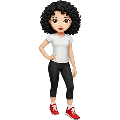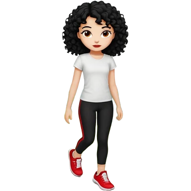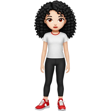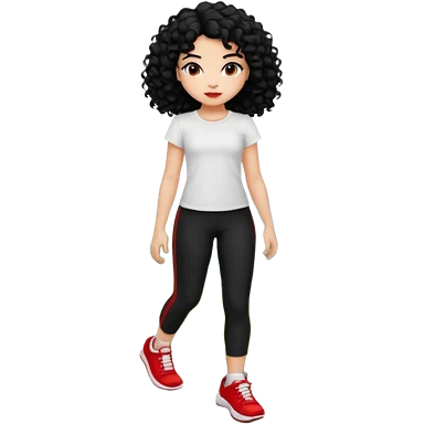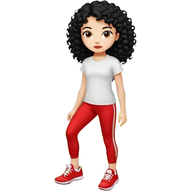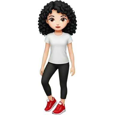 generate a pretty bratz fair skinned girl with curly black hair wearing a white tshirt trekking on a hill with red sneakers on and black leggings. Show HILLS emoji | AI Emoji Generator