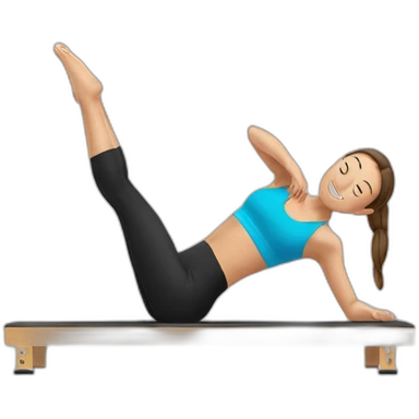 white brunette girl in light pink workout clothes doing pilates on a reformer emoji