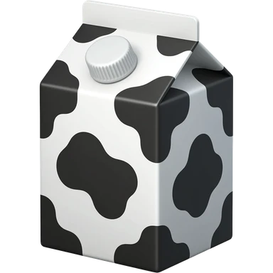 Generate a Milk carton with cow print design. Simple with one opening at the top (a screw top) emoji