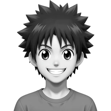 generate a black and white killua happy smail with a transparent background emoji