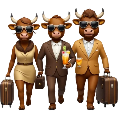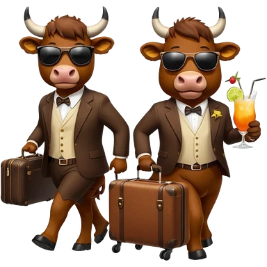 generate an emoji of a bull's face that's in a close up. the bull is travelling. maybe wearing sunglasses or drinking a drink or carrying a suitcase emoji | AI Emoji Generator