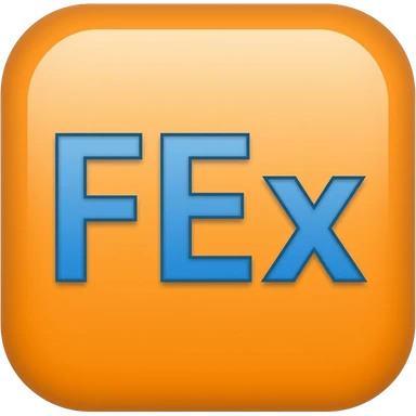 Generate an emoji that is an orange square with the letters FEx in Blue emoji
