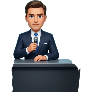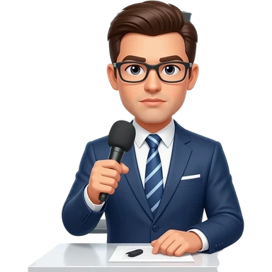 generate an image like an apple emoji of TV presenter talking seriously in a set emoji | AI Emoji Generator