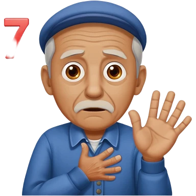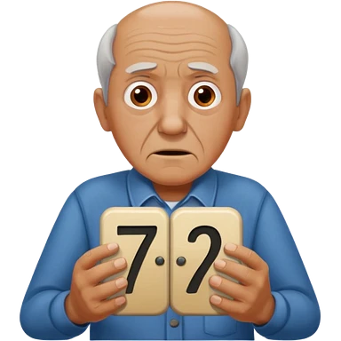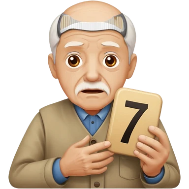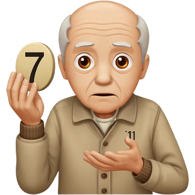 generate iphone emoji of a old gguy hold 7 and 11 numbers on hands scaried