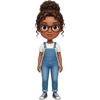 generate a fullbody girl with curly hair and glasses in a bun emoji
