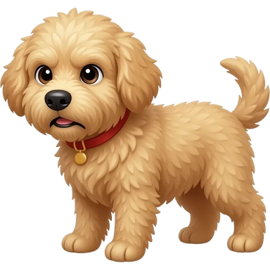 large goldendoodle, light tan, with a look of annoyance and judgement wanting food emoji