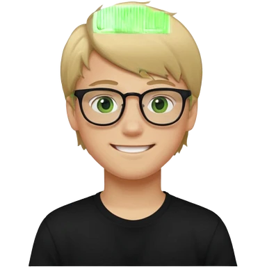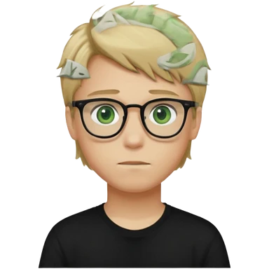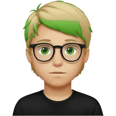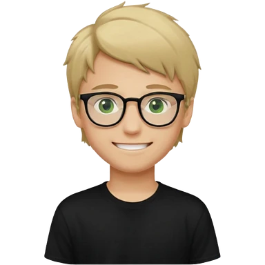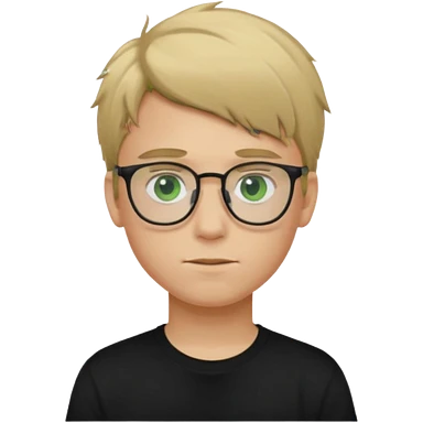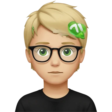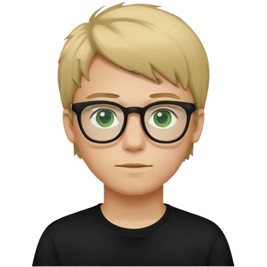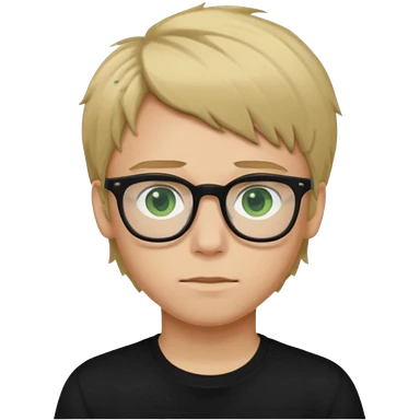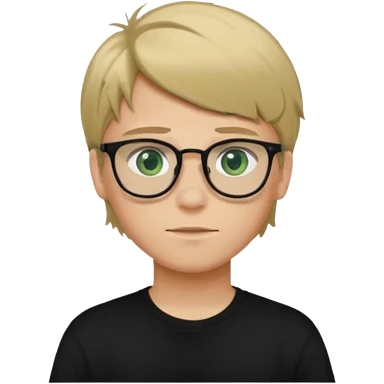 Generate me a profile picture like with a teenage boy who has dirty blond hair, green eyes, glasses and a black t-shirt emoji | AI Emoji Generator