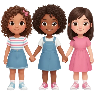 generate me a emoji in which two curly haired girl and one straight hair girl are holding hands emoji