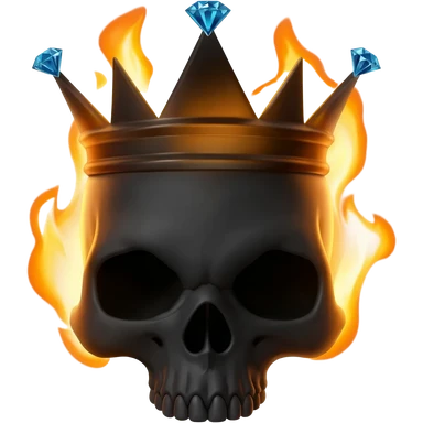 generate a black skull with a black diamond crown burning with a black flame emoji